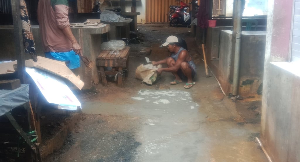 Setelah membersihkan saluran pipa dan drum-drum wadah ikan, kami mulai membuat saluran pipa baru. Saluran pipa baru ini dirancang dengan ukuran yang lebih besar agar dapat mengalirkan limbah cair dengan lebih efisien. Kami juga memasang saringan pada saluran pipa baru untuk mencegah endapan yang dapat menyumbat saluran kembali.