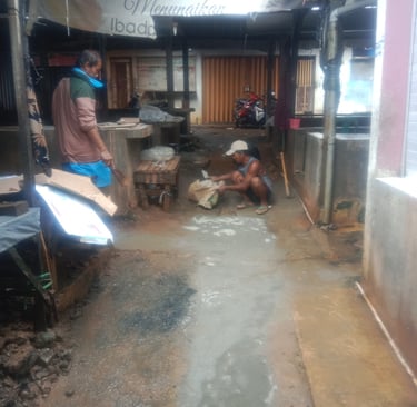 Untuk mengatasi masalah ini, kami melakukan perbaikan pada pipa saluran dengan cara membongkar saluran pipa yang lama dan membuat saluran pipa baru agar limbah cair dapat mengalir ke dalam lubang penampungan limbah cair.