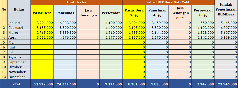 REKAPITULASI PENDAPATAN BUMDESA GATI YEKTI BULAN APRIL TAHUN 2024