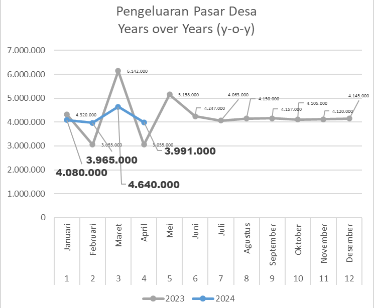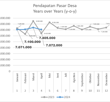 Unit Pasar Desa merupakan salah satu unit usaha yang dikelola oleh Bumdesa Gati Yekti. Pada bulan April 2024, unit ini mencatat penurunan pendapatan walaupun tidak signifikan (4,5%) dari bulan sebelumnya. Meski begitu, unit pasar desa mampu menekan pengeluaran sebesar 14% (dari bulan sebelumnya). Secara umum unit ini mampu membukukan pendapatan sebesar Rp 7.072.000 dan pengeluaran Rp 3.991.000, sehingga mendapatkan laba bersih (net income) sebesar Rp. 3.081.000 atau naik sebesar 11,4% dari bulan sebelumnya. Dibanding tahun sebelumnya di bulan yang sama (years over years) terjadi kenaikan 10,4%. Sampai bulan keempat tahun 2024 ini, unit usaha Pasar Desa masih mampu menjaga pertumbuhan pendapatan dengan kenaikan 0,4% dibanding periode yang sama.
